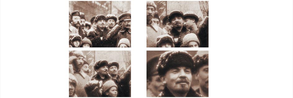 Фотография с празднования второй годовщины революции перекраивалась несколько раз. Со снимка, опубликованного в 1967 году, исчезли Лев Троцкий (справа от Ленина) и Лев Каменев (слева от Ленина в кожаной кепке и очках). Вырезали также наркома иностранных дел Максима Литвинова (стоит в первом ряду, держит руки в карманах). В конечном итоге на фотографии остался один Владимир Ильич