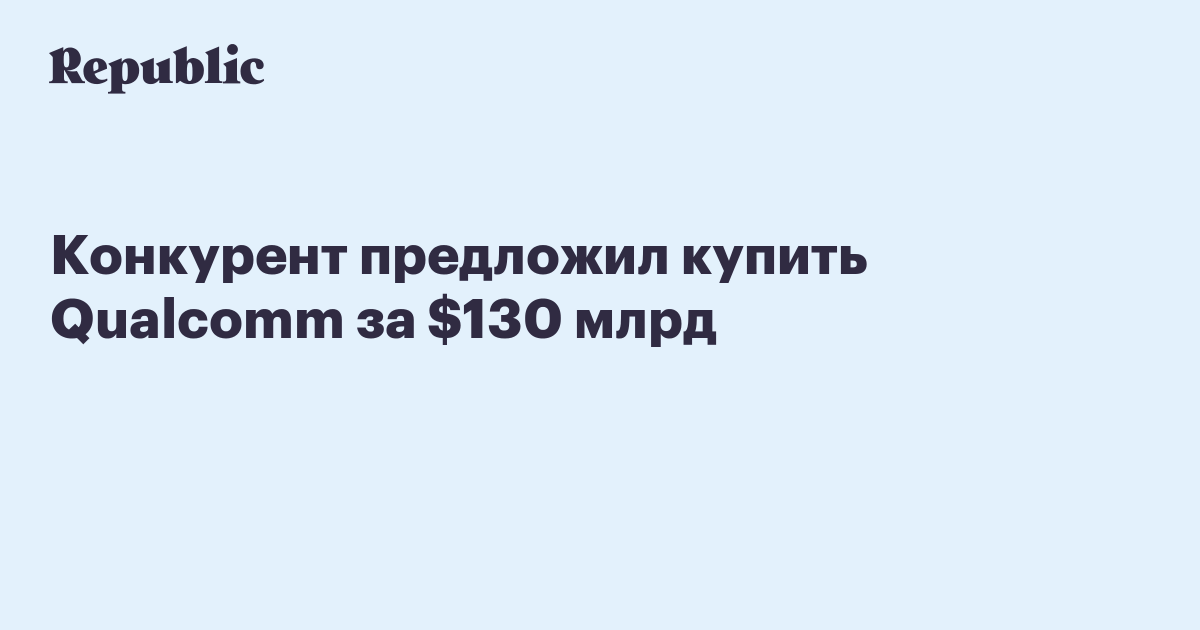 Корпорация Broadcom, выпускающая микросхемы для устройств связи, сделала предложение о покупке конкурента, компании Qualcomm. Об этом сообщается в пресс-релизе Broadcom.
