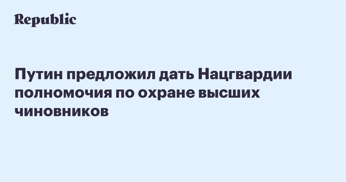 Президент России Владимир Путин предложил предоставить Нацгвардии полномочия по обеспечению безопасности высших должностных лиц субъектов РФ. Соответствующий законопроект глава государства внес в Госдуму.