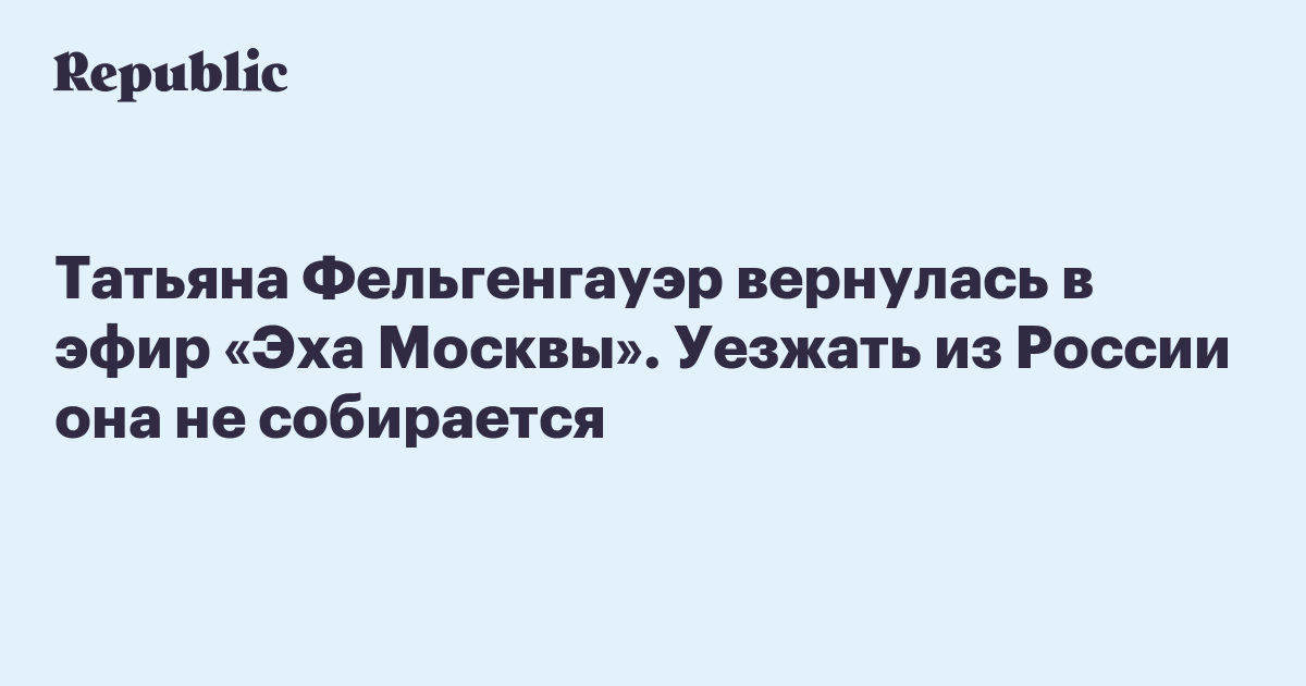 Татьяна Фельгенгауэр вернулась в эфир «Эха Москвы». Уезжать из России она не собирается