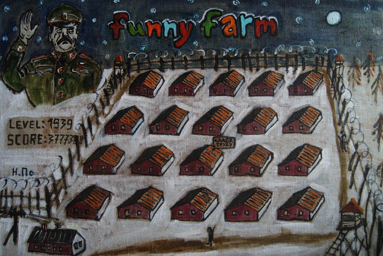 – "Сказочный" персонаж, с которым что ни сделай, все смешно. Коммунизм – большая глупость, в которую почему-то все поверили. В итоге пришли к тоталитаризму. Я-то их обоих – и Ленина, и тоталитарный режим – давно похоронил: у меня и наколочка на ребрах есть про могилу Ильича, нынче просто решил перенести ее на фанеру, – Поздняков задирает рубаху. – Коммунисты, правда, очень возмущались, когда я в апреле проводил выставку в честь Октябрьской революции, а "афишу" к ней сделал из надгробия. Тоталитарный режим – это страх, чувство, которое ничего полезного не дает, и, по-моему, лучший способ от него избавиться – смех.