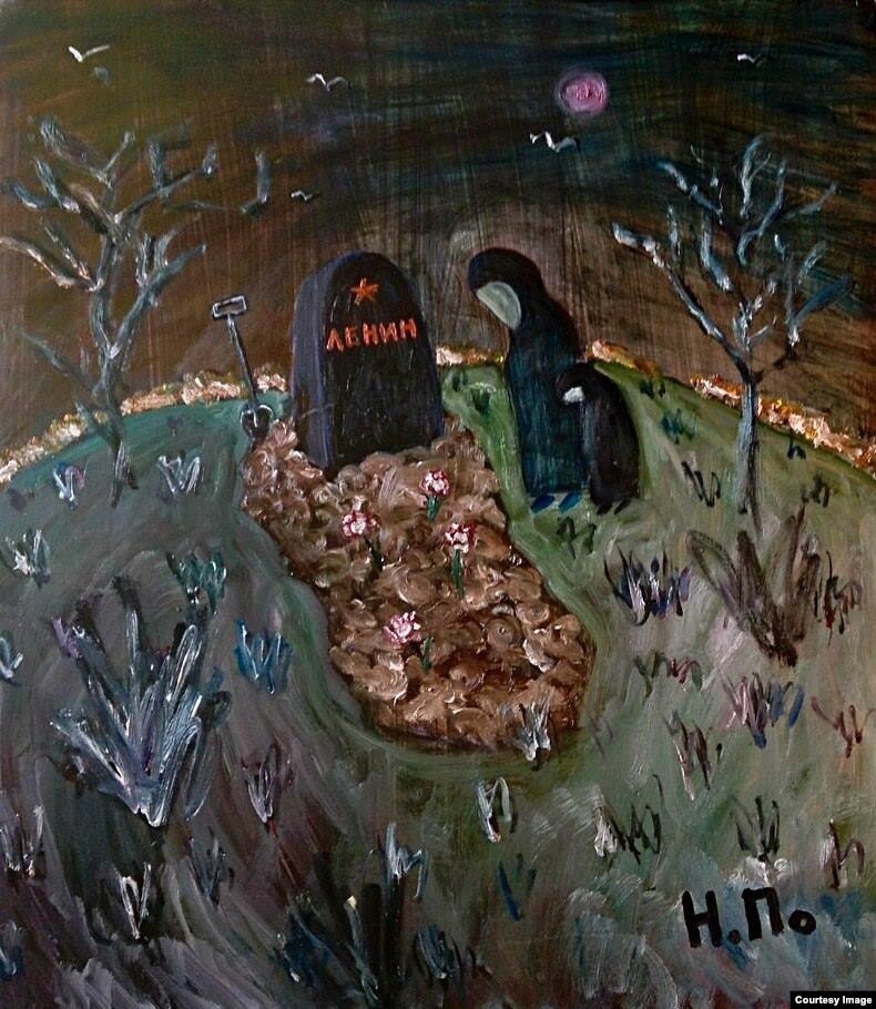 В честь столетия Великой Октябрьской революции 30-летний омский художник Никита Поздняков решил, наконец, похоронить Ленина. Его картина "Могила Ильича" с плачущей над холмиком земли женщиной в черном пока еще нигде не выставлялась. Премьера на сайте "Сибирь.Реалии"