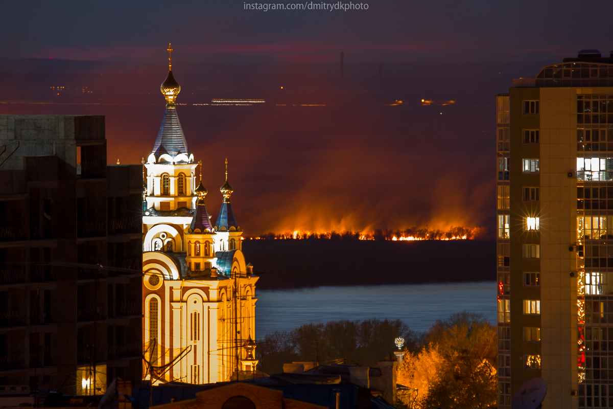 Пожарище на островах левобережья отлично видно на фотографиях, которыми горожане делятся в социальных сетях. Эти снимки они делают из своих квартир, окна которых как раз выходят на Амур. И если с лесными пожарами в крае борьба еще как-то ведется, то палы на левом берегу, судя по десяткам фотографий, никто не тушит.