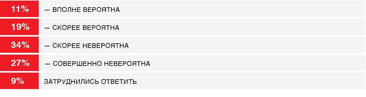 В последний раз опрос на тему новой революции проводили в 2007 году. Тогда 25% опрошенных говорили, что революция возможна, еще 57% считали, что она «скорее» или «совершенно невероятна», а каждый пятый (18%) затруднился с ответом.