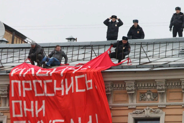 У БКЗ «Октябрьский» 6 ноября задержали 23 активистов «Другой России». Они планировали провести несанкционированное шествие по Невскому проспекту. Кроме того, активисты вывесили на стене соседнего дома баннер с надписью «Ильич, проснись, они ****** [с ума сошли]»!