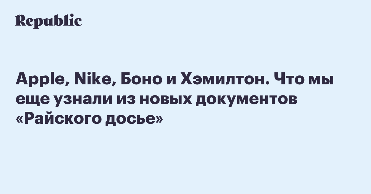 Apple, Nike, Боно и Хэмилтон. Что мы еще узнали из новых документов «Райского досье»