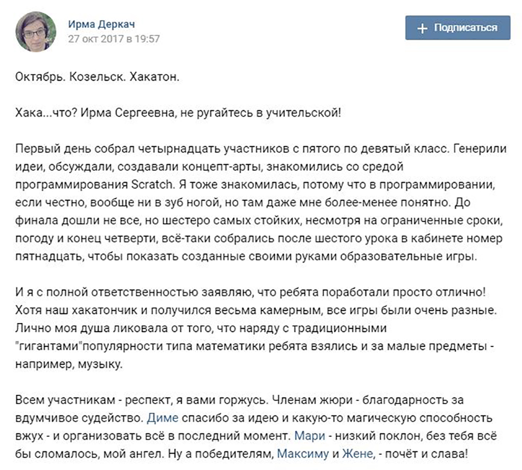 «Я никогда не оставался так долго в школе», – сказал один участник хакатона, и разве это не лучшая обратная связь?». Елена Ярманова, организатор хакатона