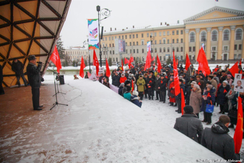 Томские коммунисты отметили 100-летие революции возложением цветов к памятнику Ленину, шествием и митингом. На площади Ново-Соборной собрались около двухсот человек. Со сцены выступающие говорили о необходимости сменить власть, вернуться ко времени, когда всем давали квартиры, а также обращались «к президенту, который будет избран в 2018 году»: «Путин, если хочешь быть президентом, прими закон о детях войны и закрой вопрос о перезахоронении тела Ленина».