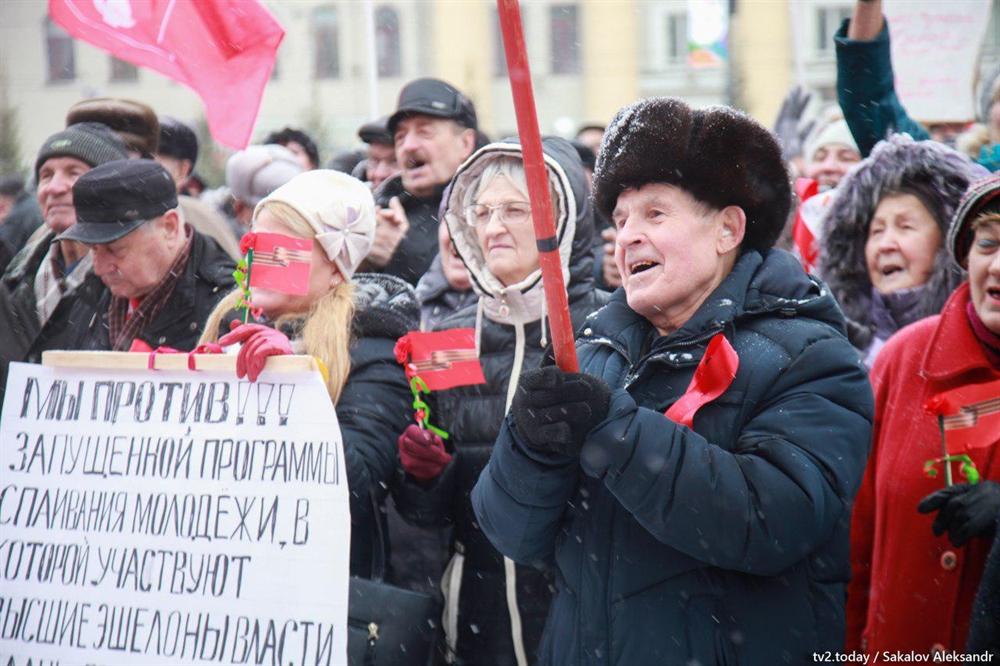 На митинг собрались в основном люди старшего поколения. Молодых людей можно было пересчитать по пальцам.