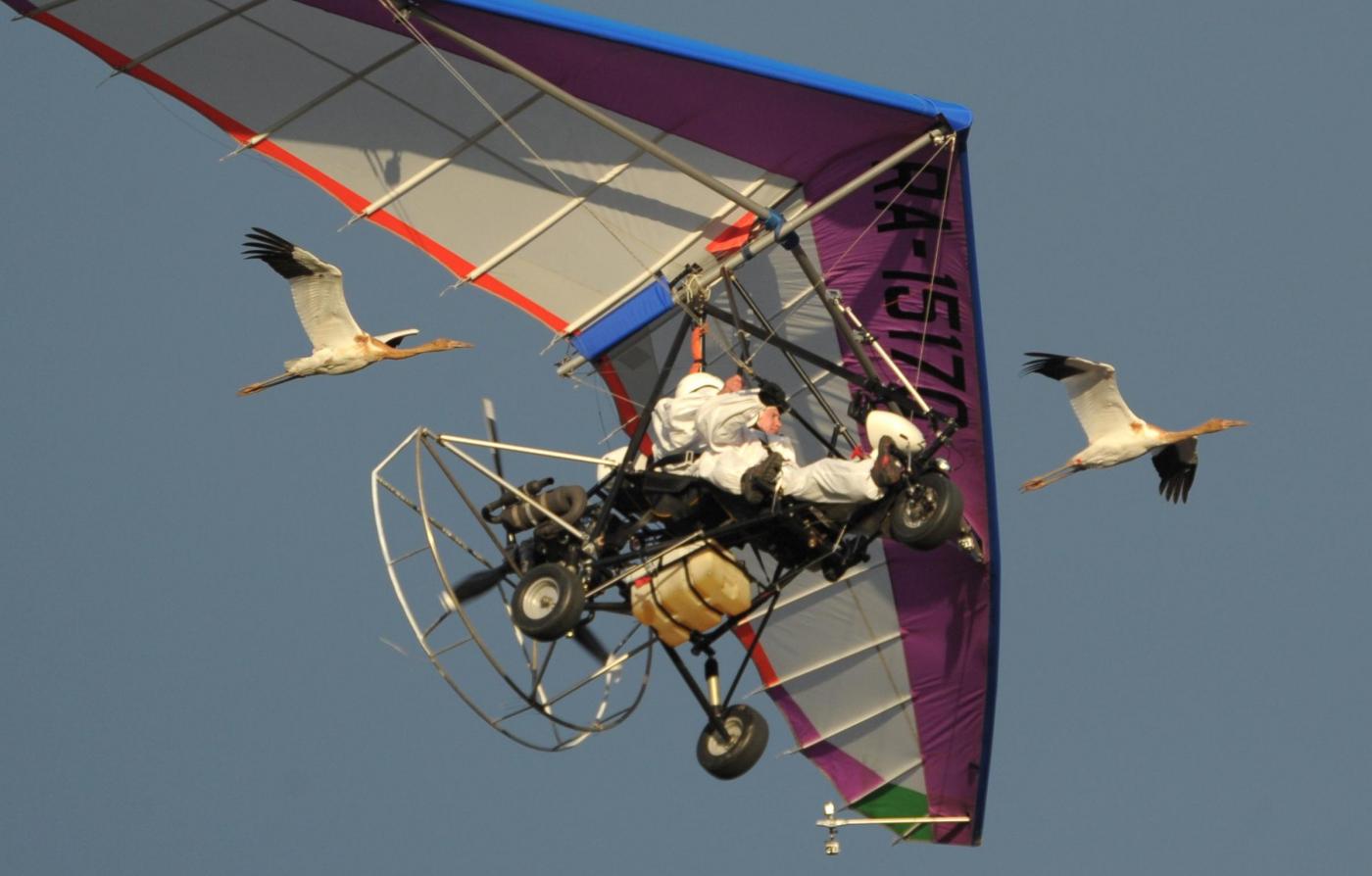 Обычный дельтаплан взлетает на скорости около 100 километров в час. А скорость журавля на взлете – от 30 до 60 километров. Нужен был аппарат, который умел бы взлетать на более низких скоростях, чтобы птицы за ним успевали