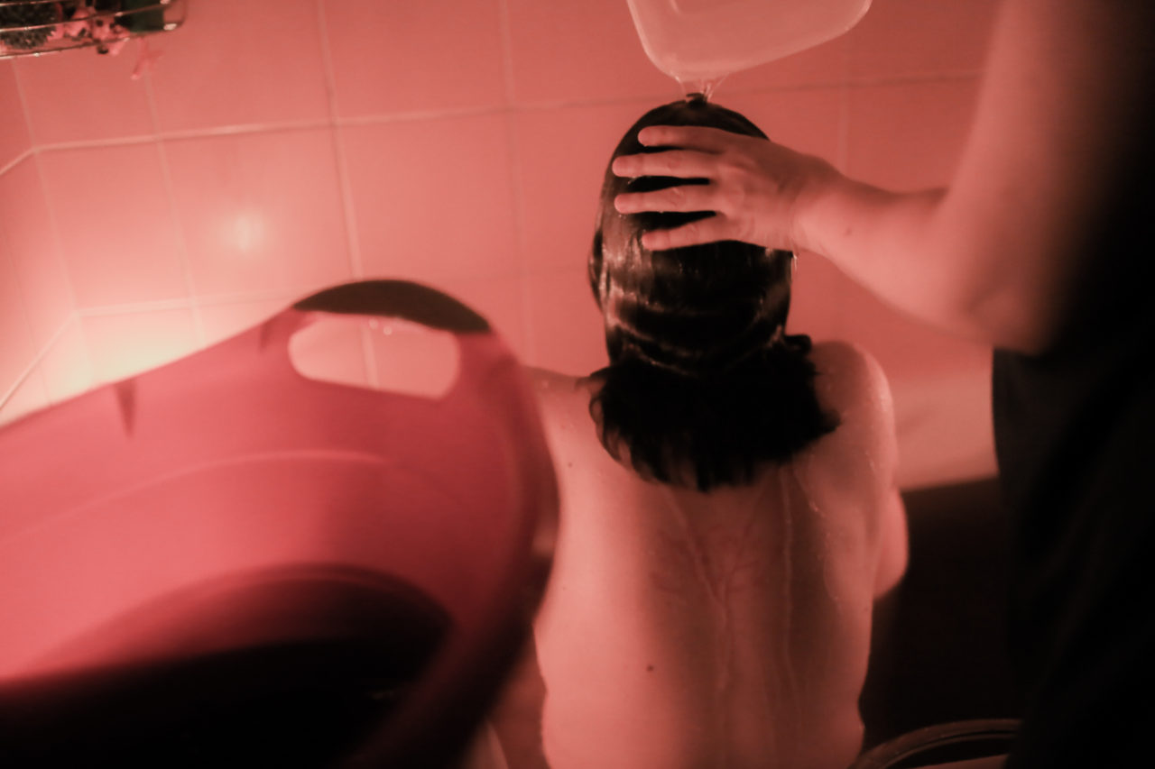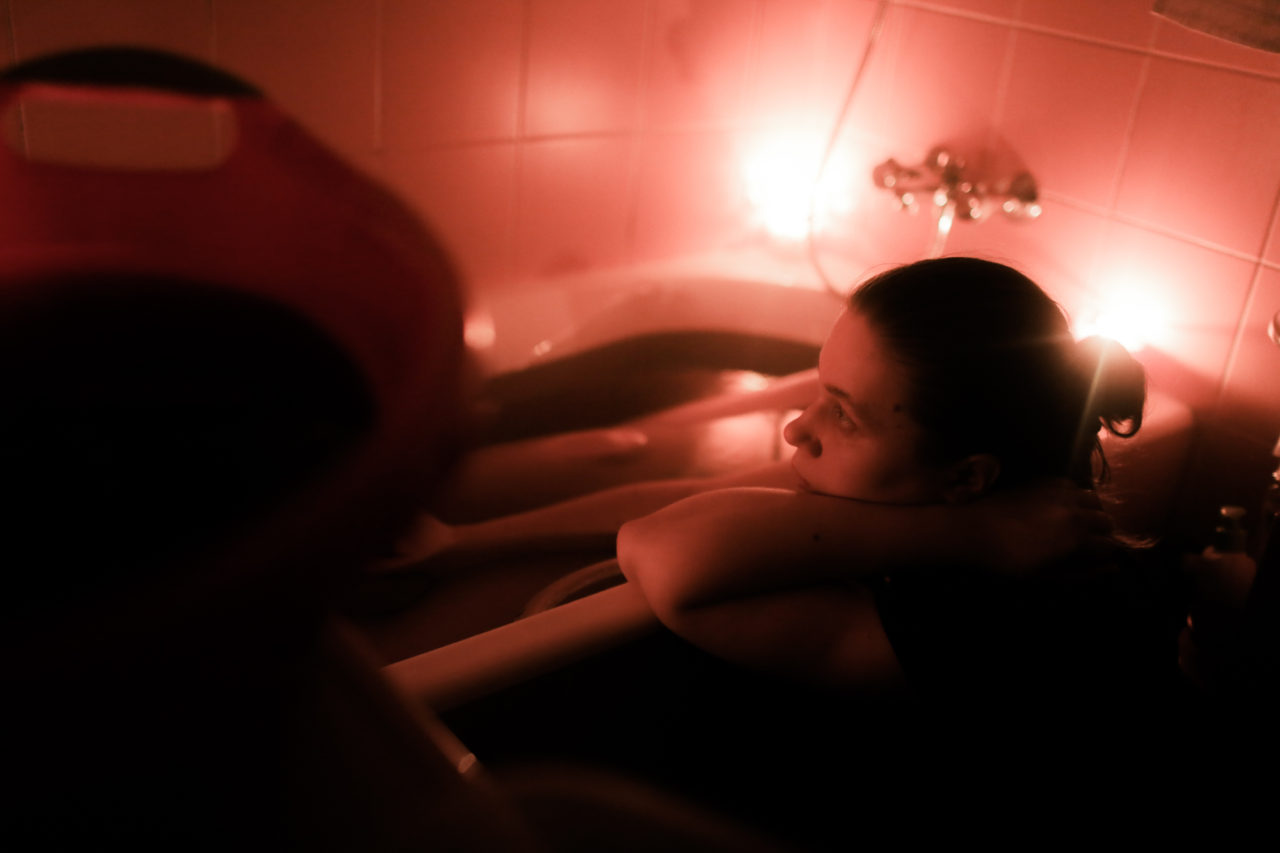 Идет шестой час родов. Тишина, полумрак, периодическое гудение. Маша лежит в ванной, Наташа держит ее за руку, смотрит на нее. Ничего не меняется. Атмосфера настолько расслабленная, что я теряю счет времени. Кажется, что я была здесь всегда, что это место — вне времени и пространства. Это легко могла бы быть пещера, древнерусская баня или комната в дворянском поместье или даже крестьянской избе.