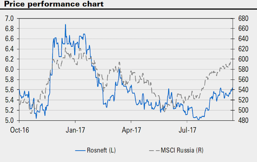 Аналитики Goldman Sachs в своем октябрьском отчете в целом настроены по отношению к «Роснефти» гораздо оптимистичнее своих коллег из Sberbank CIB, но отмечают, что на последних встречах с инвесторами их часто спрашивали о том, почему бумаги «Роснефти» проигрывают в сравнении с другими российскими нефтяными компаниями.