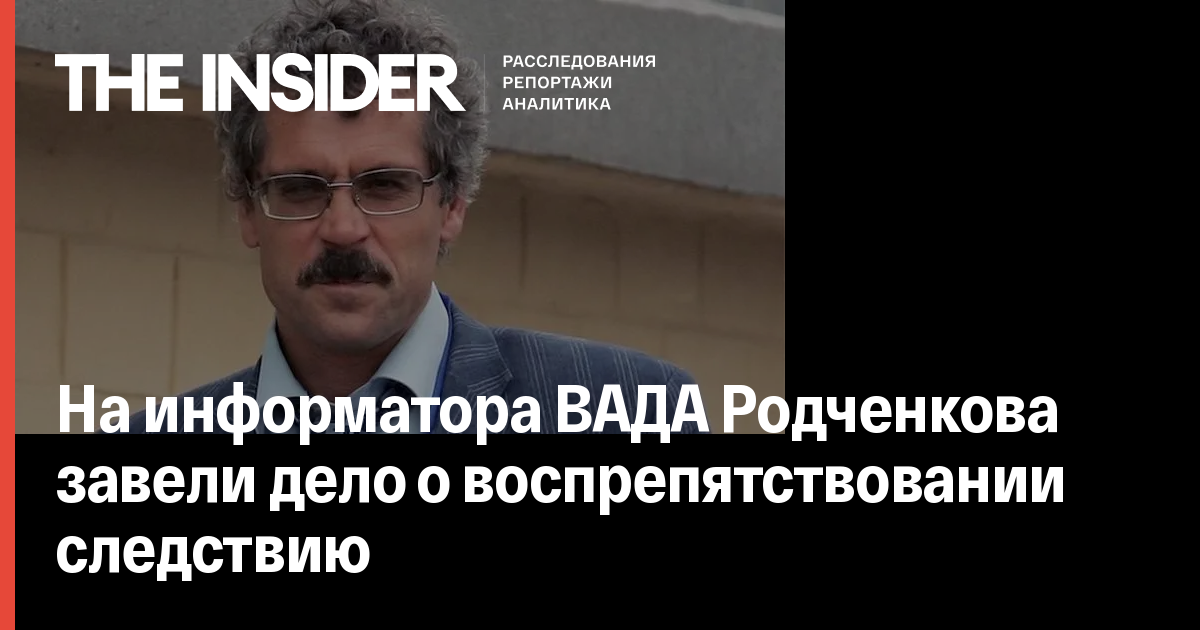 На информатора ВАДА Родченкова завели дело о воспрепятствовании следствию