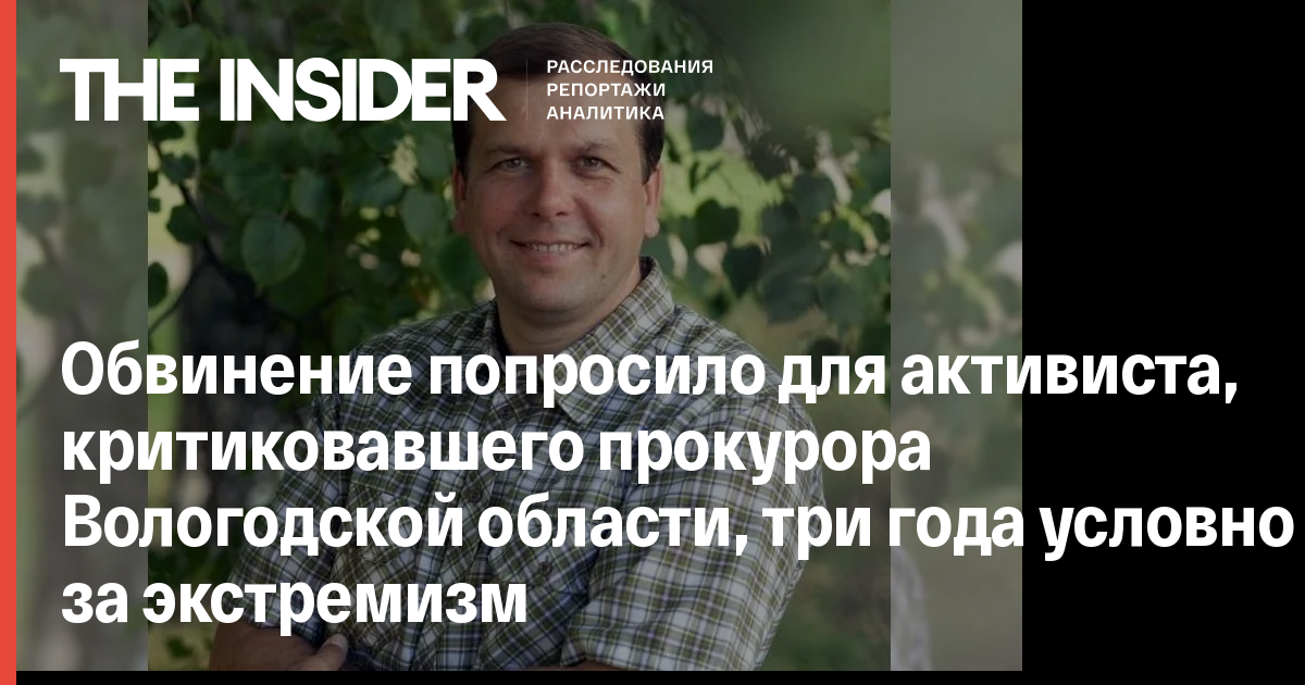 Обвинение попросило для активиста, критиковавшего прокурора Вологодской области, три года условно за экстремизм