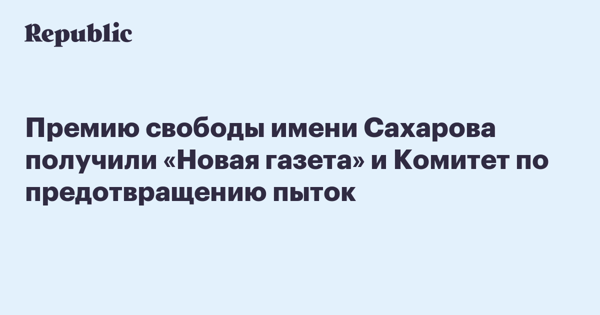 Премию свободы имени Сахарова получили «Новая газета» и Комитет по предотвращению пыток