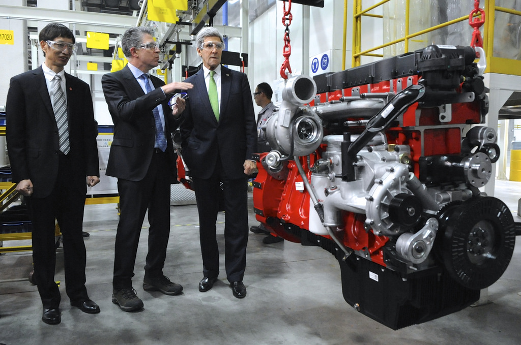 Госсекретарь США Джон Керри на совместном китайско-американском автомобильном заводе в Китае. 2014 State Department photo/ Public Domain На самом деле, отмечает автор, поведение Китая очень напоминает поведение США. США долгое время позиционировали себя как последнюю надежду мира. Теперь с аналогичными притязаниями начал выступать Китай. США склонны всем ставить в пример свою политическую систему. Теперь Китай утверждает, что по сравнению с просвещенной китайской демократией западная выглядит невзрачной. Более того, Китай уже пытается экспортировать свою модель.