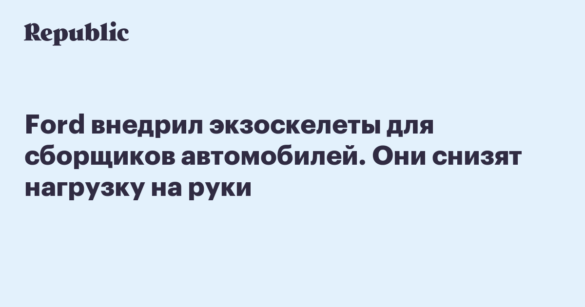 Ford внедрил экзоскелеты для сборщиков автомобилей. Они снизят нагрузку на руки