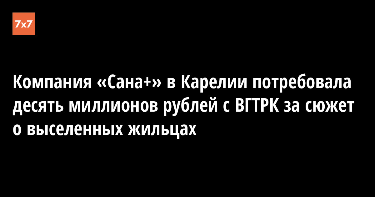 Строительная компания «Сана+» подала иск о защите нарушенной деловой репутации на редакцию телеканала «Россия» после вышедшего в эфир в июне 2017 года сюжета о выселенных из квартир жителях Петрозаводска. В нем корреспондент рассказал истории людей, которые купили квартиры у строительного холдинга по валютным договорам займа. Жильцы не смогли выплачивать кредиты после роста курса доллара, их начали выселять из квартир. Подробнее об этой истории — в материале «7x7».