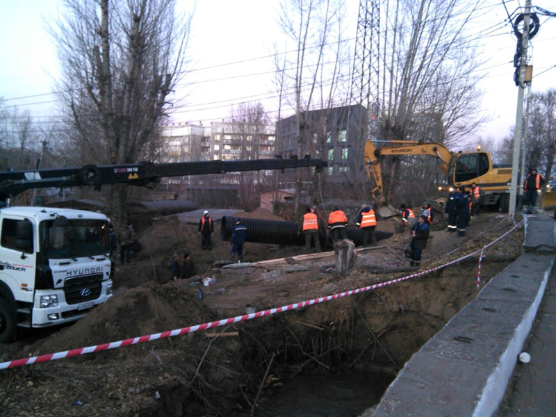 Коммунальную аварию обещают устранить в субботу во второй половине дня. Круглосуточно на месте ЧП работают несколько аварийных бригад, работники МУП "Водоканал", привлечены сотрудники ГУ МЧС по Бурятии и строители.