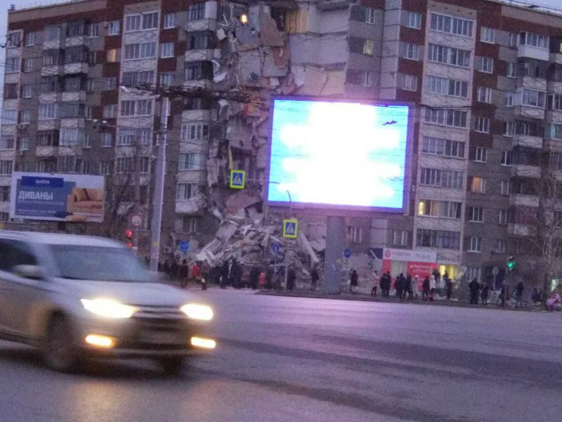 В результате взрыва газа в панельной девятиэтажке по улице Удмуртская, 261, полностью обрушился угловой подъезд дома. Погибли семь человек, в том числе двое детей, еще три подростка получили травмы.