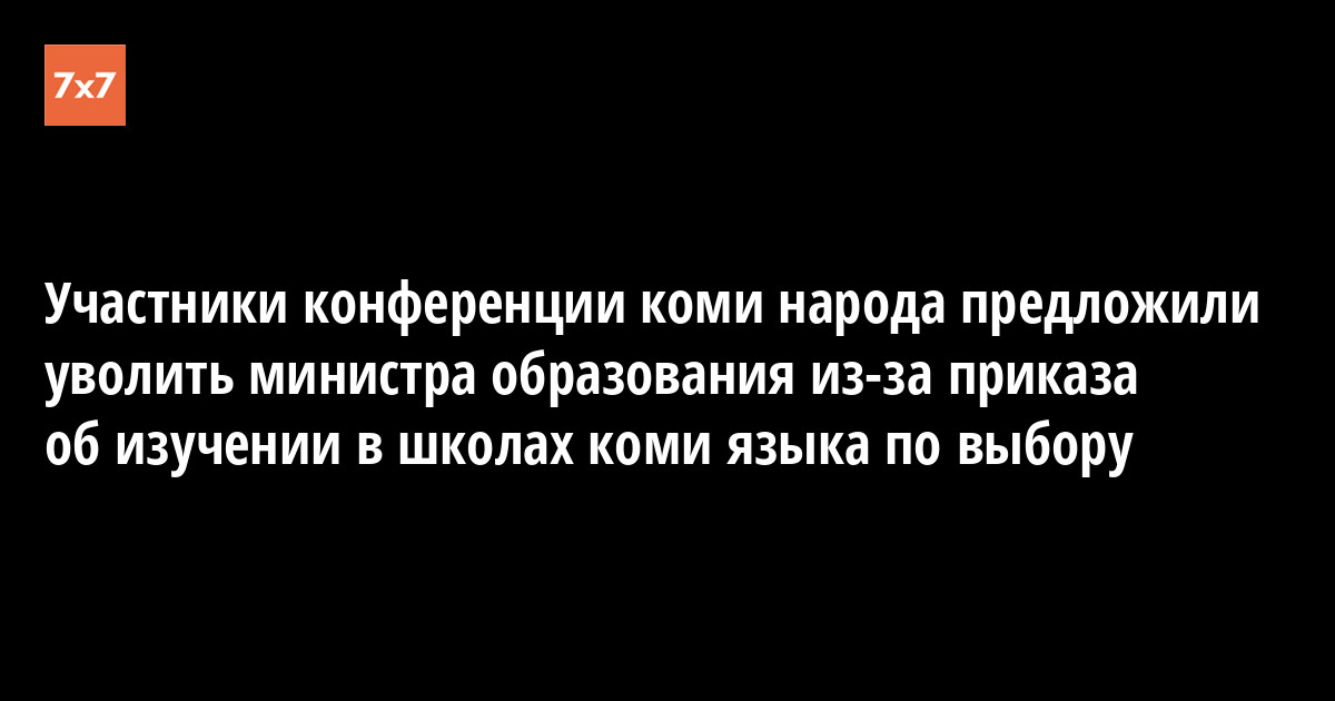 Участники конференции коми народа в Сыктывкаре 10 ноября проголосовали за то, чтобы отменить приказ №366-н министерства образования, науки и молодежной политики республики от 26 октября 2017 года о выборе русского или коми языка для изучения в школах как родного. Об этом в своем блоге на «7x7» написал секретарь межрегионального общественного движения (МОД) «Коми войтыр» («Коми народ») Алексей Рассыхаев.