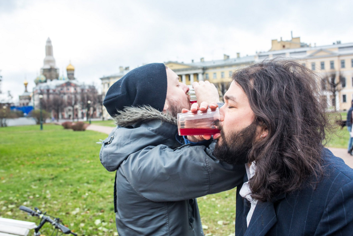 Петербургские активисты взяли друг у друга кровь, смешали ее с водкой и выпили на брудершафт