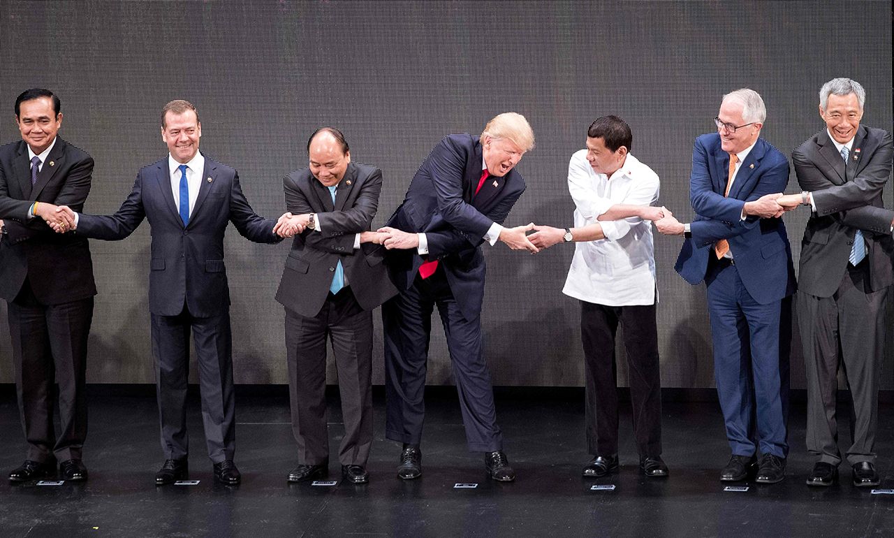 В Маниле на саммите азиатских стран, где также присутствуют российский премьер Дмитрий Медведев и американский президент Дональд Трамп, фотограф попросил политиков скрестить руки и пожать руки соседей. Трамп справился не сразу, Медведев не справился совсем. Причем это не первый раз: точно так же Медведев сфотографировался в 2007 году. Владимир Путин такого себе не позволял.
