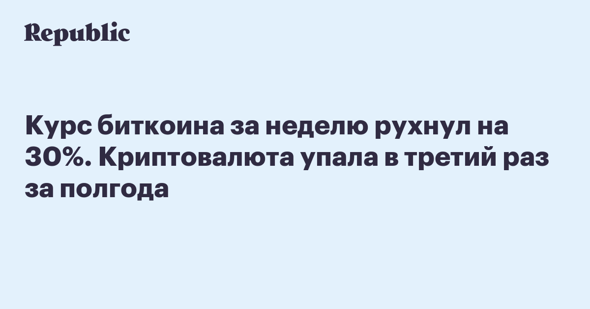 Курс биткоина за неделю рухнул на 30%. Криптовалюта упала в третий раз за полгода