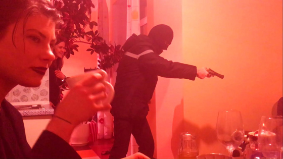 — Участники сериала — в основном художники или люди из околохудожественного круга. Например, девушка с пистолетом на вечеринке — это архитекторка Дана Космина, она кричит: «На пол, шавки!» Те, кто знаком с политическими субкультурами, знают, что так ультраправые называют левых и антифашистов. Эта сцена — сатира на случай нападения ультраправых на выставку Давида Чичкана в киевском Центре визуальной культуры в феврале этого года. Тогда группа правых радикалов разгромила выставку и избила охранника.