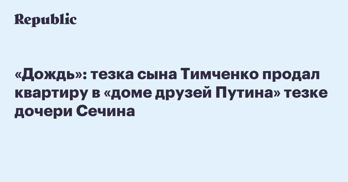 «Дождь»: тезка сына Тимченко продал квартиру в «доме друзей Путина» тезке дочери Сечина