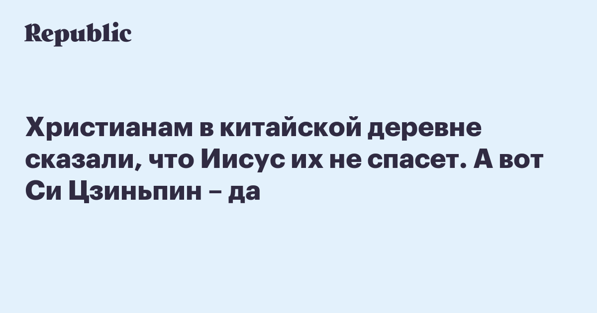 Христианам в китайской деревне сказали, что Иисус их не спасет. А вот Си Цзиньпин – да