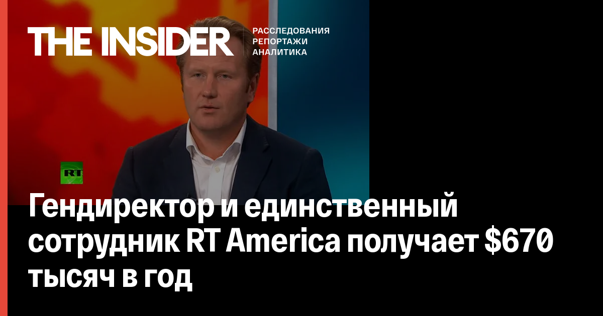 Гендиректор и единственный сотрудник RT America получает $670 тысяч в год