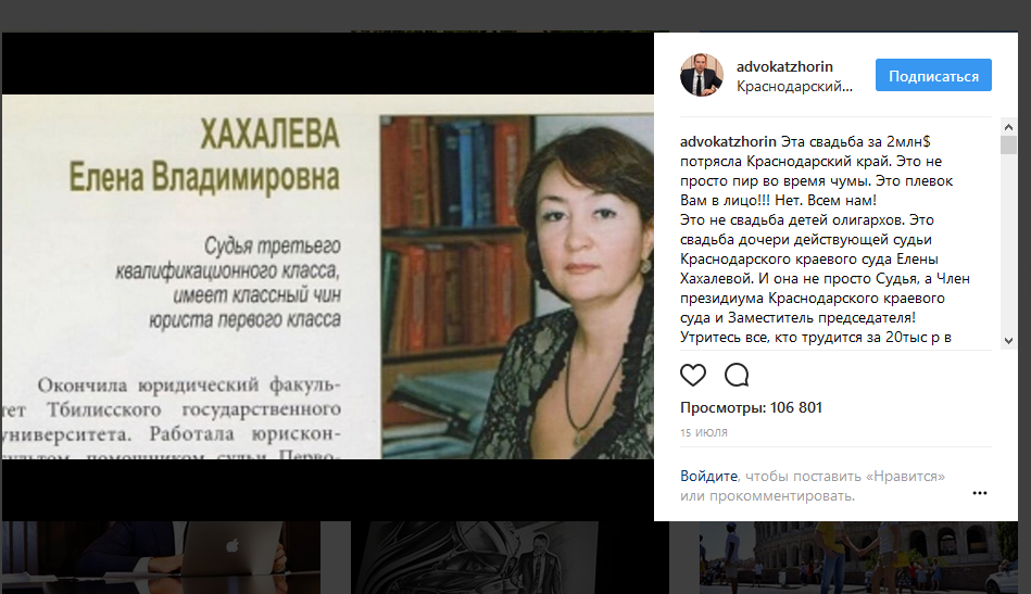 В начале лета разгорелся скандал вокруг свадьбы дочери Хахалевой, которая состоялась в резиденции "Галич-Холл". По данным СМИ, мероприятие обошлось судье в $2 млн. Для молодоженов выступали Валерий Меладзе, Сосо Павлиашвили, Вера Брежнева, Николай Басков. Гостем на торжестве также стал Иосиф Кобзон.