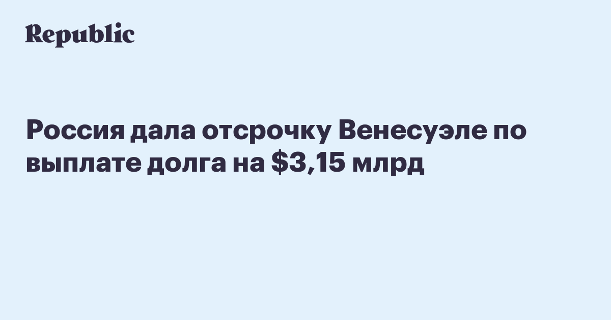 Россия дала отсрочку Венесуэле по выплате долга на $3,15 млрд
