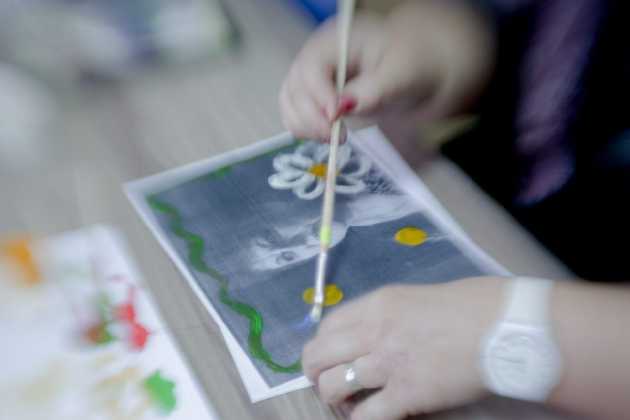 Большинство мероприятий проходит в большой светлой комнате со столами и мольбертами, на стенах в комнате — рисунки и другие самодельные украшения. Сюда и стала ходить Лариса на занятия под названием «Акварель жизни». «Сначала было, конечно, очень сложно — не хотелось даже говорить про все те трудности, которые пришлось пережить. Но в процессе общения в группе мы стали раскрываться — нам помогали психологи, мы перестали бояться друг друга», — говорит Лариса.