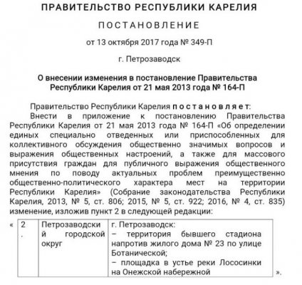 13 октября Глава Республики Карелия Артур Парфенчиков подписал постановление, которое исключило площадь Кирова (центральная площадь города) в Петрозаводске из перечня гайд-парков. Об этом пишет портал «Черника».