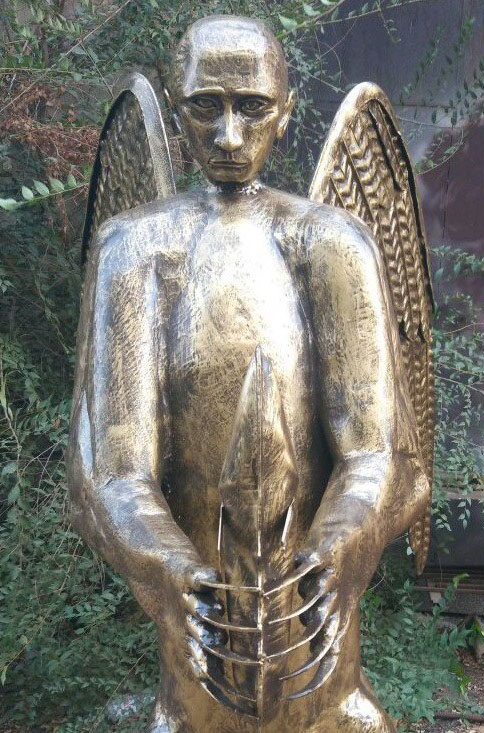 Астраханский скульптор Виктор Кропачев создал удивительный образ: существо с телом медведя, лицом Владимира Путина и крыльями орла. У существа в лапах — осетр. Скульптор планирует подарить свое творение президенту.