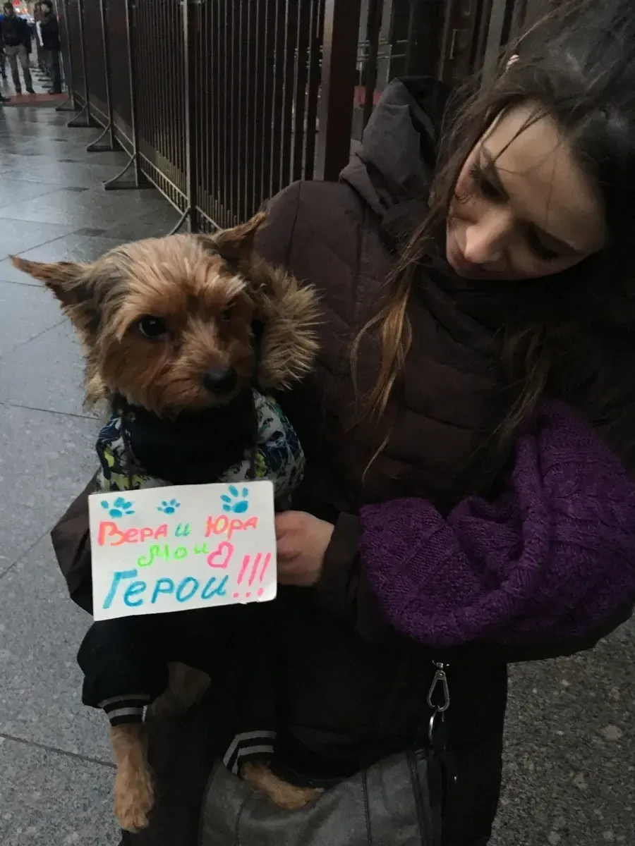 Среди тех, кто приехал к Госдуме поддержать зоозащитников — москвичка Анастасия. У неё на руках сидит йоркширский терьер Арчи, одетый в утеплённый комбинезон с меховым капюшоном. На шее у него — яркая табличка, на которой написано «Вера и Юра — мои герои!». Он считает зоозащитников героями, «потому что они борются за его права», — объясняет хозяйка. Бессрочная голодовка, по её словам, радикальный метод воздействия на депутатов: «Скорее всего, это просто последний отчаянный шаг людей, которые не могут достучаться до руководства страны».
