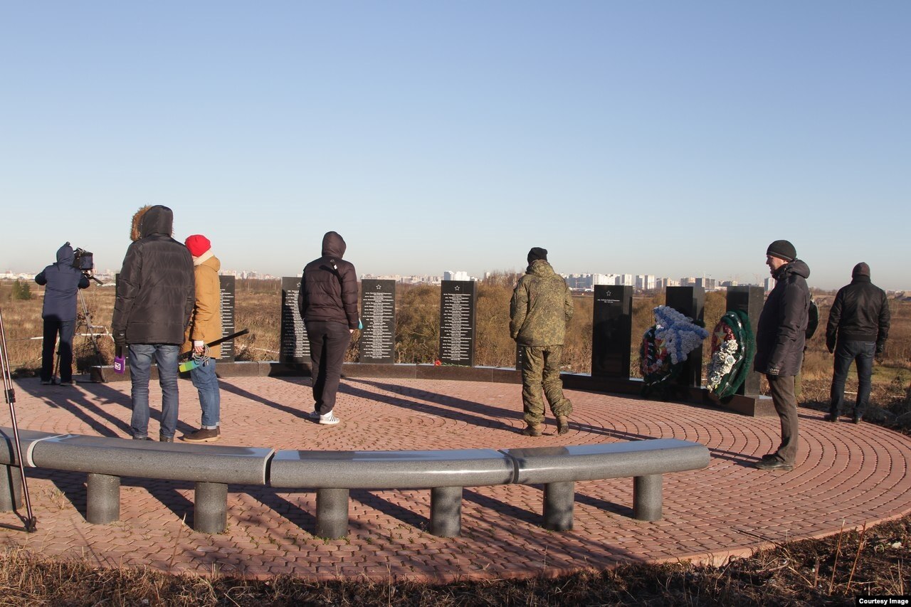 – В 2009 году, когда началось проектирование "Экспофорума", историки и краеведы сразу поняли, что раз там шли бои, то там должны быть и захоронения. Были произведены поисковые работы, пушкинский историк Виктор Пунтарев собрал документы, военкомат проверил его данные, и захоронение на этом месте было паспортизировано. В 2012 году поисковое объединение "Доблесть" провело повторные поисковые работы, удостоверило, что захоронения там есть. В 2015 году там установили простую стелу, а потом возник большой памятник – девять плит с именами павших воинов.