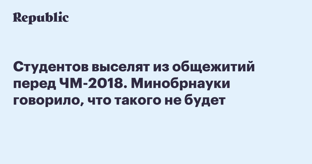 Студентов выселят из общежитий перед ЧМ-2018. Минобрнауки говорило, что такого не будет