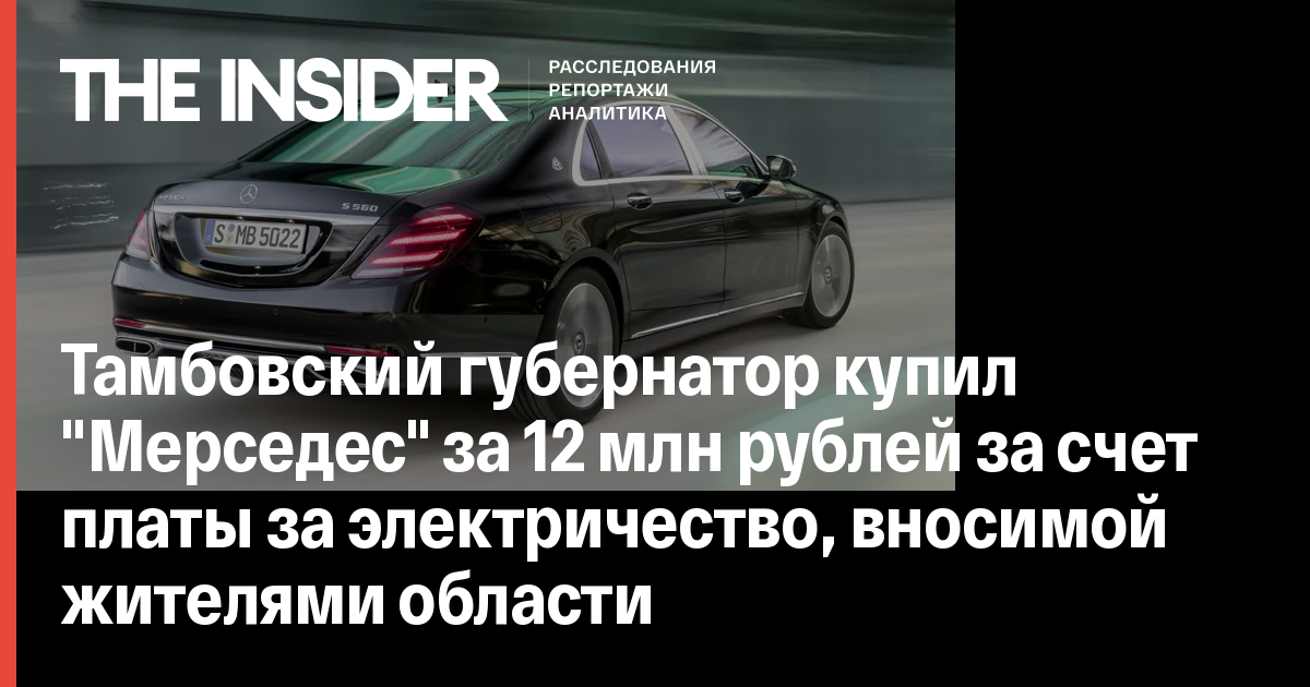 Тамбовский губернатор купил "Мерседес" за 12 млн рублей за счет платы за электричество, вносимой жителями области