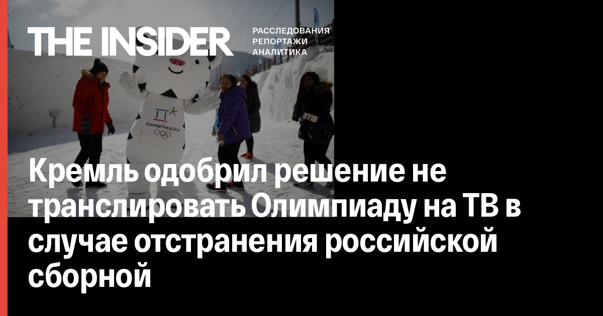 В пятницу пресс-служба ВГТРК сообщила, что холдинг откажется от трансляции Олимпиады в Пхенчхане, если МОК отстранит российскую сборную от участия. «Ведомости» сообщили об аналогичном решении Первого канала и телеканала «Россия 1».