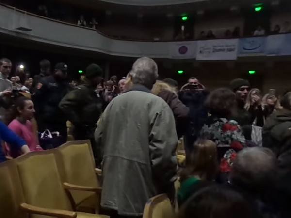 В сети появились видеозаписи, на которых запечатлен срыв концерта Константина Райкина в Одессе.