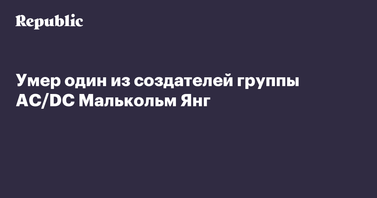 Один из основателей австралийской рок-группы AC/DC Малькольм Янг умер в возрасте 64 лет. Об этом сообщается в фейсбуке группы.