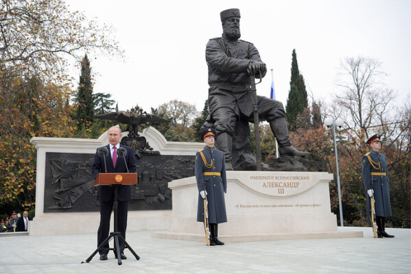 18 ноября Владимир Путин открыл в Ялте памятник Александру III. Через несколько часов после открытия скульптуру раскритиковали в сети, указав на то, что некоторые достижения, приписываемые эпохе царя и отражённые в барельефе, были сделаны в другие периоды истории. Например, Достоевский «умер за 30 дней до того, как был убит Александр второй и соответственно начал править третий».