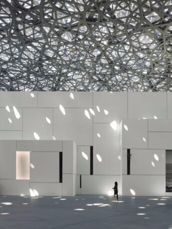 Купол здания создан из восьми тысяч металлических звёзд, перекрывающих друг друга и рассеивающих солнечный свет. Форма купола выбрана не случайно — по замыслу Нувеля, она должна напоминать об архитектурных традициях региона. Белые кубы, из которых составлены стены, символизируют постройки арабских поселений и представляют собой метафору Медины.