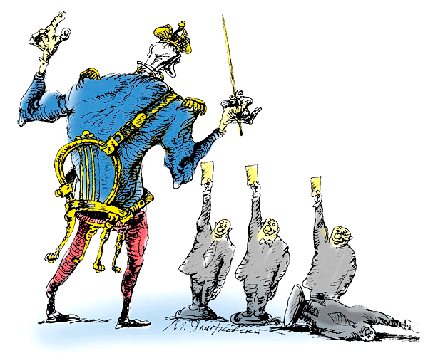 Устранить очевидное несоответствие между густым самодержавным духом и хоть никем не соблюдаемой, но все-таки сохранившейся демократической буквой российской Конституции – настоятельная задача Кремля. Только что член фракции КПРФ Госдумы (в далеком прошлом режиссер гениального фильма) Владимир Бортко внес законопроект, который в случае одобрения обеспечит принятие другой Конституции. Депутат призывает учредить новый орган госвласти – Конституционное собрание. С тем, чтобы пересмотреть те статьи Основного закона, которые недоступны редактированию Госдумой. И прежде всего первую статью, которая определяет государственное устройство России как республику. Объясняя это, Бортко вполне в духе героя «Собачьего сердца» несет чушь о том, что надо отказаться от приоритета международного права над российским, а также упомянуть о русском народе. Однако пересмотр этой статьи открывает возможность для установления несменяемой власти. Неугомонный Владимир Вольфович уже предложил варианты именования нового царя: «верховный правитель» или просто «начальник». Но все эти титулы не дают гарантий семье (именно это, подозреваю, больше всего занимает Владимира Путина, который живет в своей системе координат). Создание новой династии идеально отвечает этим потребностям. А страна к самодержавию готова.