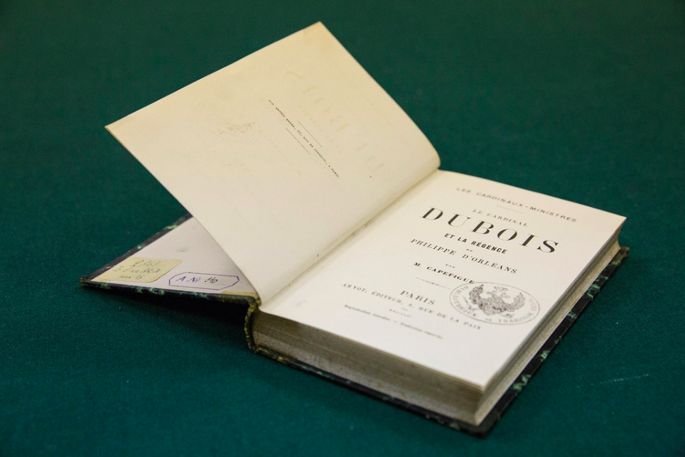 Книгу руководству ГМЗ передала гендиректор Государственной библиотеки в Берлине Барбара Шнайдер-Кемпф. Она рассказала, что книгу Жана Батиста Капефига «Кардинал Дюбуа и регентство Филиппа Орлеанского: [серия] кардиналы-министры», изданную на французском языке в 1861 году, ей отдал житель Германии, купивший ее в букинистическом магазине в Амстердаме.
