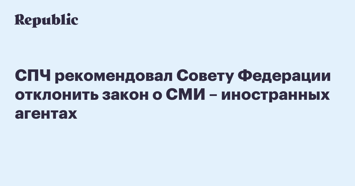 Совет по правам человека при президенте РФ (СПЧ) рекомендовал Совету Федерации отклонить закон о СМИ – иностранных агентах. Об этом сказано в экспертном заключении СПЧ.