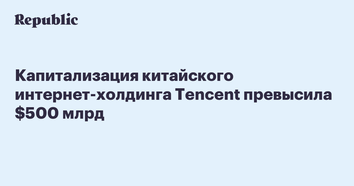 Капитализация китайского интернет-холдинга Tencent превысила $500 млрд